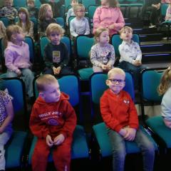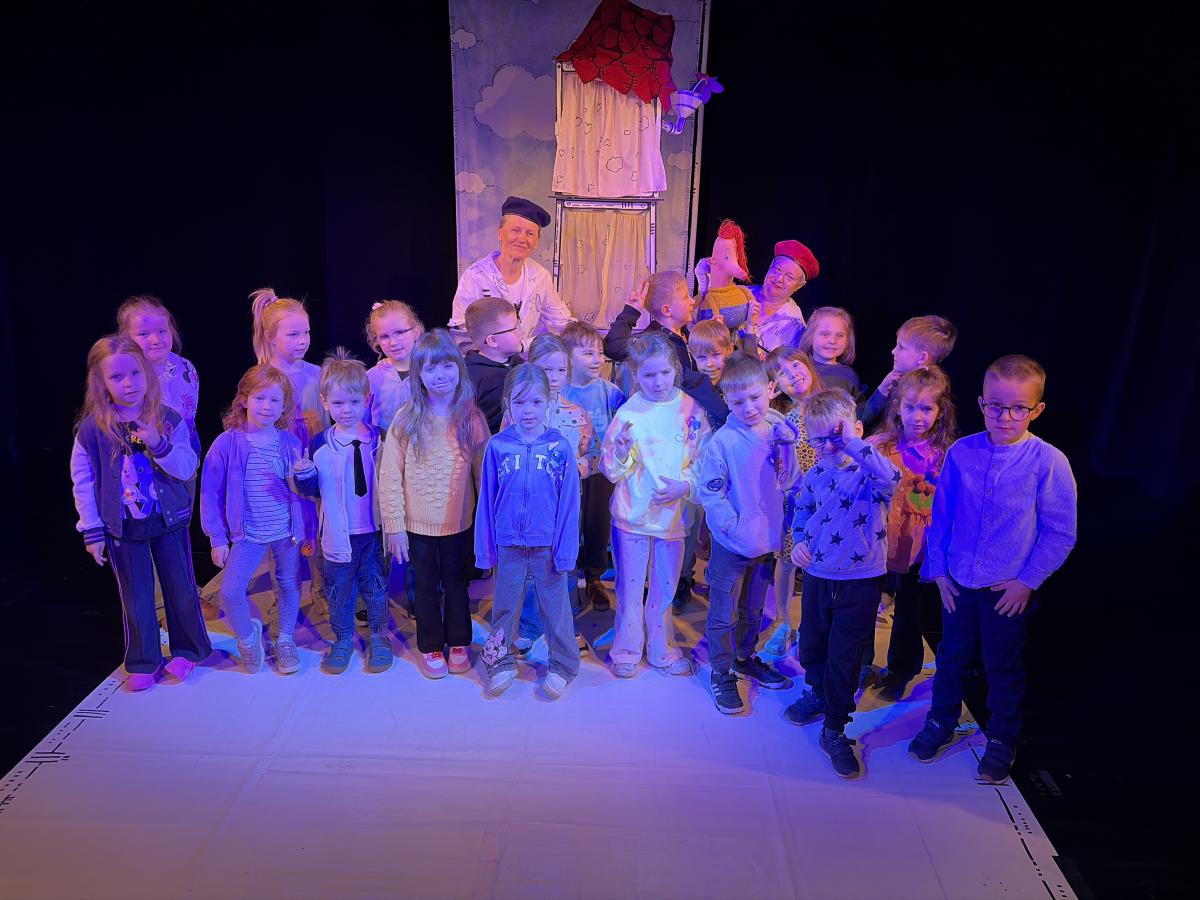 W dniu dzisiejszym grupa „Pszczółki” i „Motylki” wybrała się do Teatru Lalki i Aktora „Kubuś” na spektakl pt. „Pan Brzuchatek”. Wizyta w teatrze dostarczyła dzieciom wielu radosnych wrażeń oraz była okazją do obcowania ze sztuką i rozwijania wyobraźni.