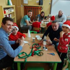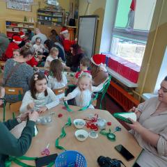 W świątecznym nastroju Biedroneczki przywitały rodziców w swojej sali. Dzieci zaprezentowały krótki występ artystyczny oraz wspólnie z rodzicami wykonały świąteczną choinkę. Bardzo dziękujemy gościom za przybycie, wspólną zabawę i miło spędzony czas. Życzymy wszystkim Wesołych Świąt!