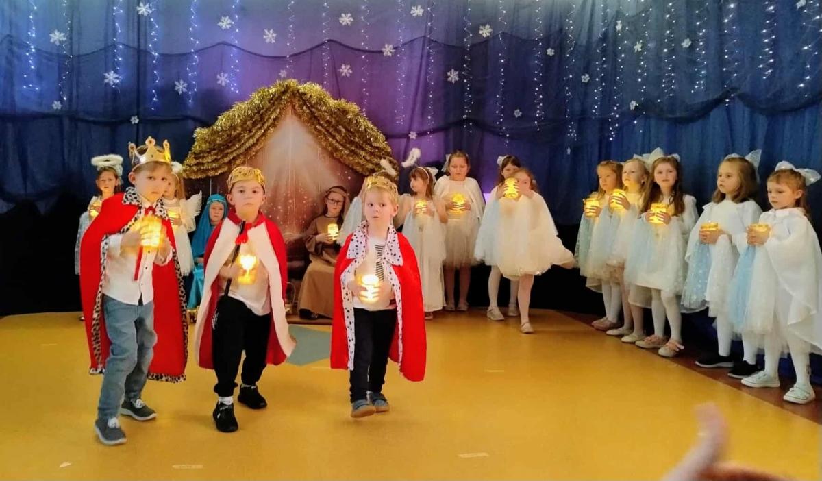 Mali aktorzy z wielkim zaangażowaniem wcielili się w role Maryi, Józefa, aniołów, pasterzy oraz Trzech Króli. Poprzez recytowane wiersze, śpiew kolęd i pastorałek dzieci opowiedziały o cudownych wydarzeniach sprzed tysiecy lat. Barwne stroje, piękna scenografia oraz świąteczna muzyka podkreśliły wyjątkowy charakter przedstawienia.