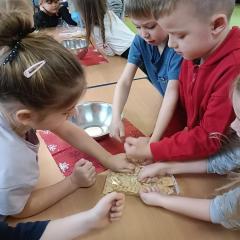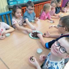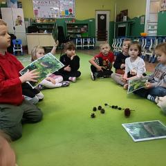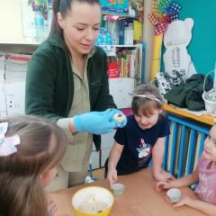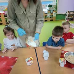 Dnia 18 stycznia, odwiedziła nas Pani Paulina P. z Zespołu Świętokrzyskich i Nadnidziańskich Parków Krajobrazowych, aby wykonać jadalne szyszki. Przeprowadziła warsztaty z Jeżykami Żabkami i Smerfami. Opowiedziała dzieciom o różnicach dotyczących gatunków drzew iglastych. Następnie dzieci wspólnymi siłami wykonały jadalne szyszki.