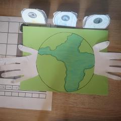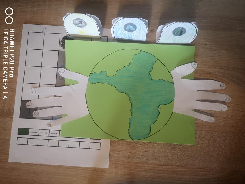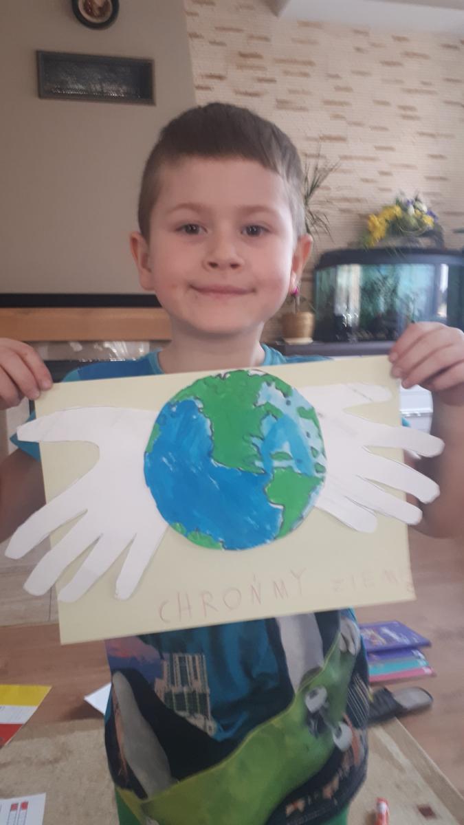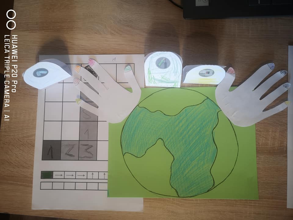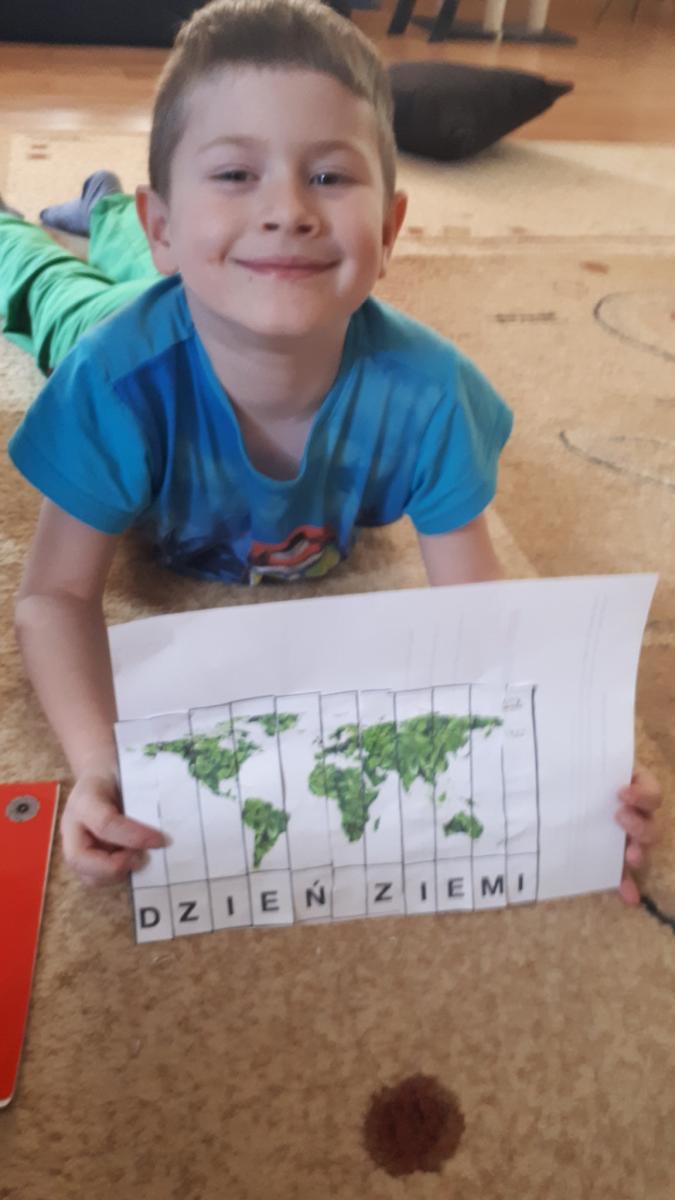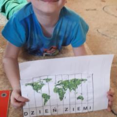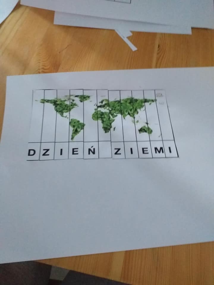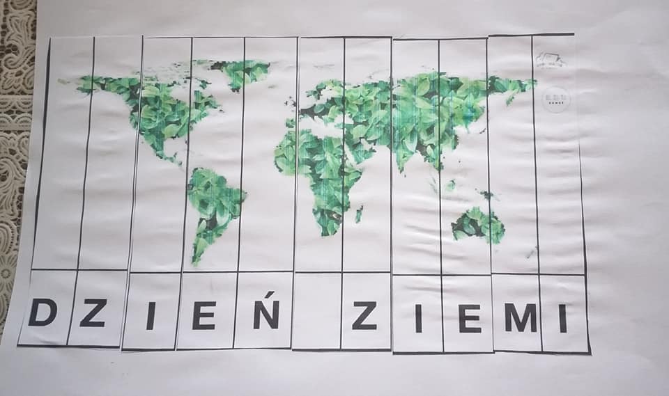 Z okazji Dnia Ziemi grupa Tropicieli wykonała wspólnie z rodzicami plakat. To dłonie rodziców bowiem miały być odrysowane przez dzieci i wycięte. Ponadto stworzyły prawidłowy kod, ułożyły sudoku, wycięły, ułożyły i przykleiły puzzle z napisem Dzień Ziemi.