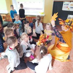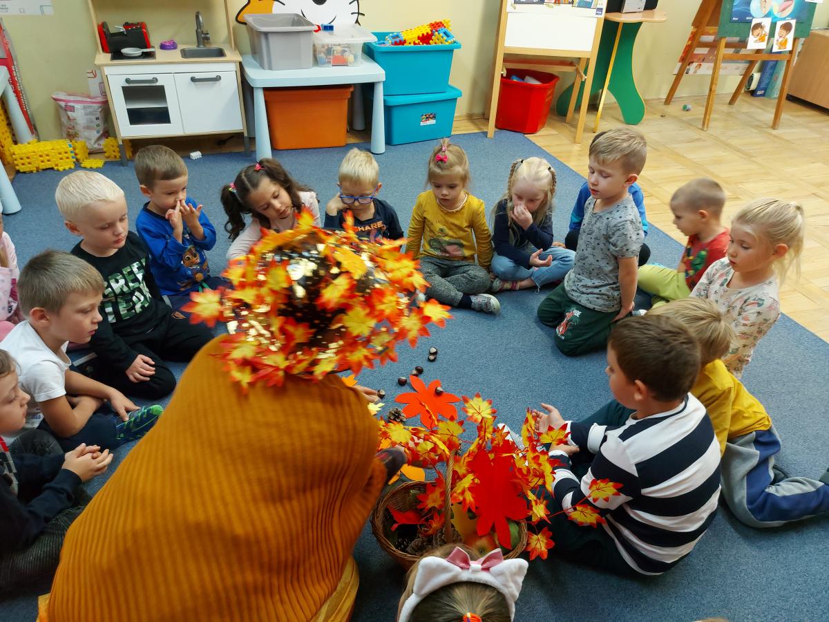 Dodane przez przedszkole22 - 22.09.2021 Piękna pani Jesień odwiedziała dzisiaj nasze przedszkole. Przyniosła ze sobą kolorowe liście, jarzębinę, orzechy, grzyby i wiele innych darów jesieni. Dzieci z zaciekawieniem wysłuchały opowiadania o jeżyku oraz zaśpiewy piosenkę "Kolorowe liski"