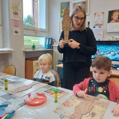 Dzieci z wielkim zaangażowaniem wykonywały dziadka do orzechów, rozwijając swoją kreatywność i zdolności manualne. Warsztaty sprawiły przedszkolakom wiele radości i wprowadziły wszystkich w świąteczny nastrój ✨