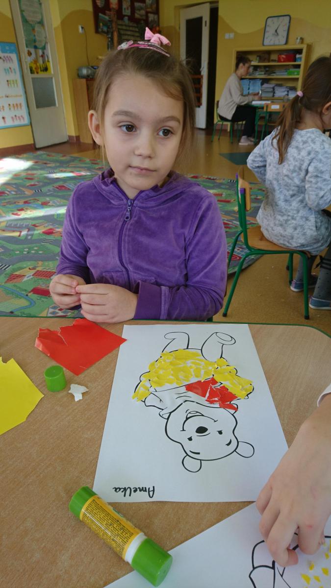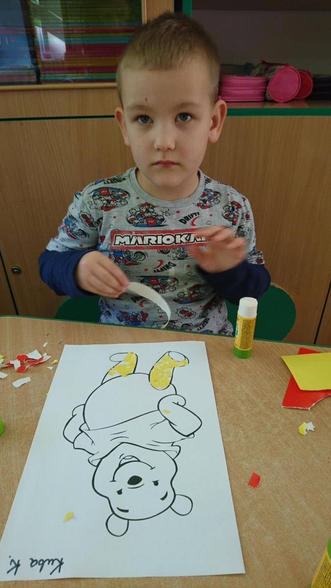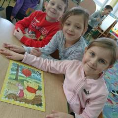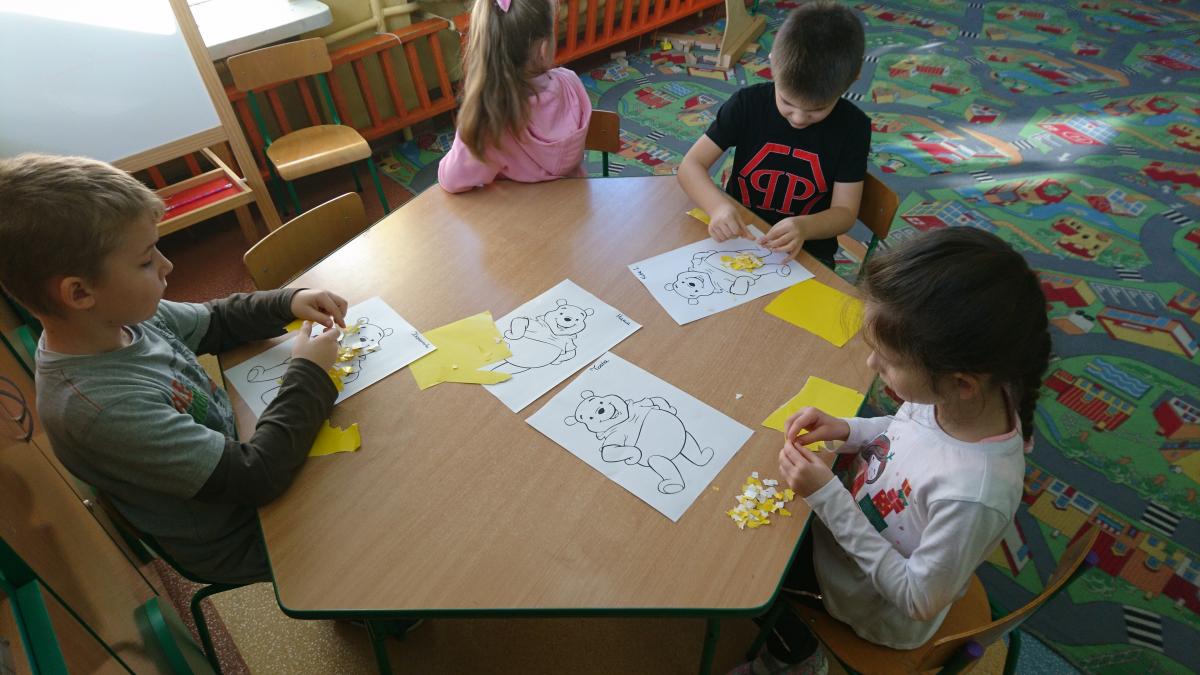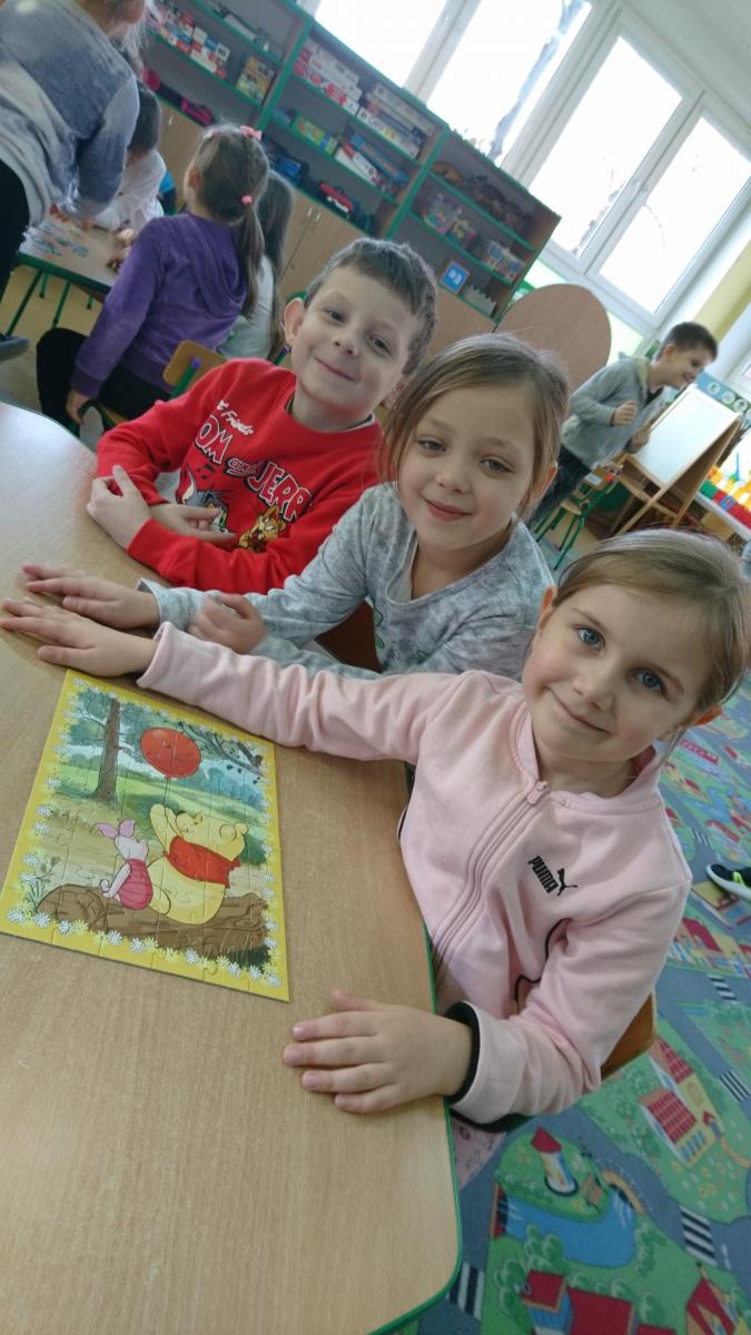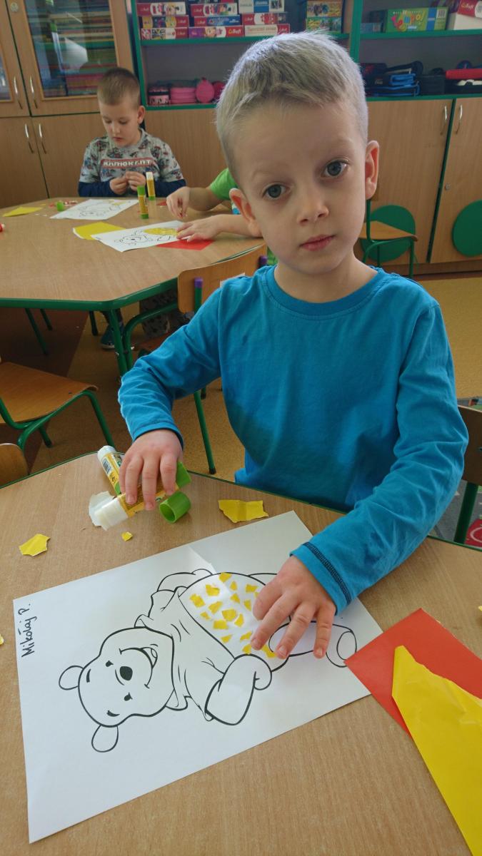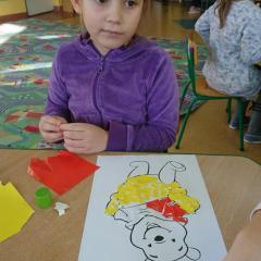 Dzisiaj w przedszkolu swoje święto obchodził Miś. Z tej okazji grupa Pszczółek wysłuchała fragmentu książki "Kubuś Puchatek", wybrała się w podróż do "Stumilowego lasu" oraz dzieci układały puzzle o przygodach misia i jego przyjaciół. Następnie obejrzeliśmy fragment filmu "Kubuś Puchatek" opowiadający o przyjaźni i miłości na podstawie, którego rozmawialiśmy o empatii i wzajemnym szacunku. Dzieci z podziałem na grupy układały "Misiowe sudoku" oraz wykonały pracę plastyczną - Kubuś Puchatek.