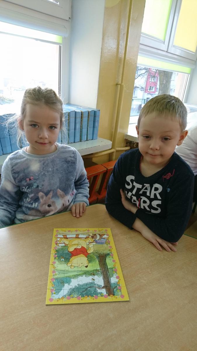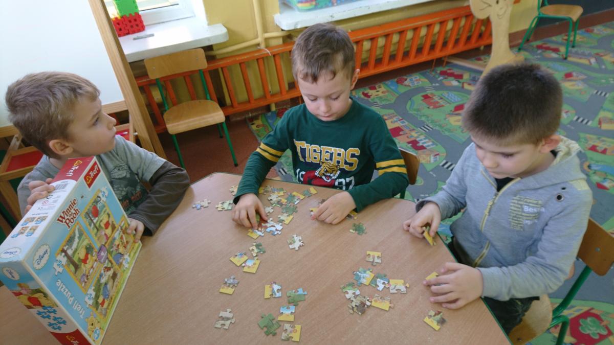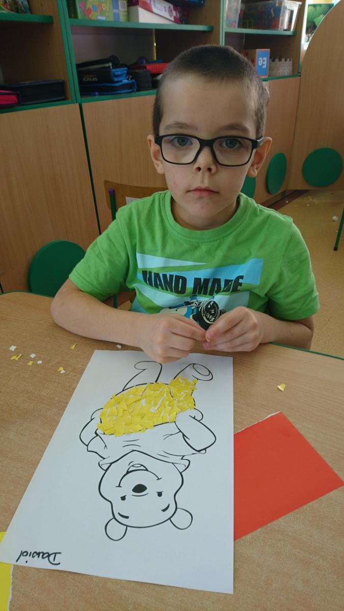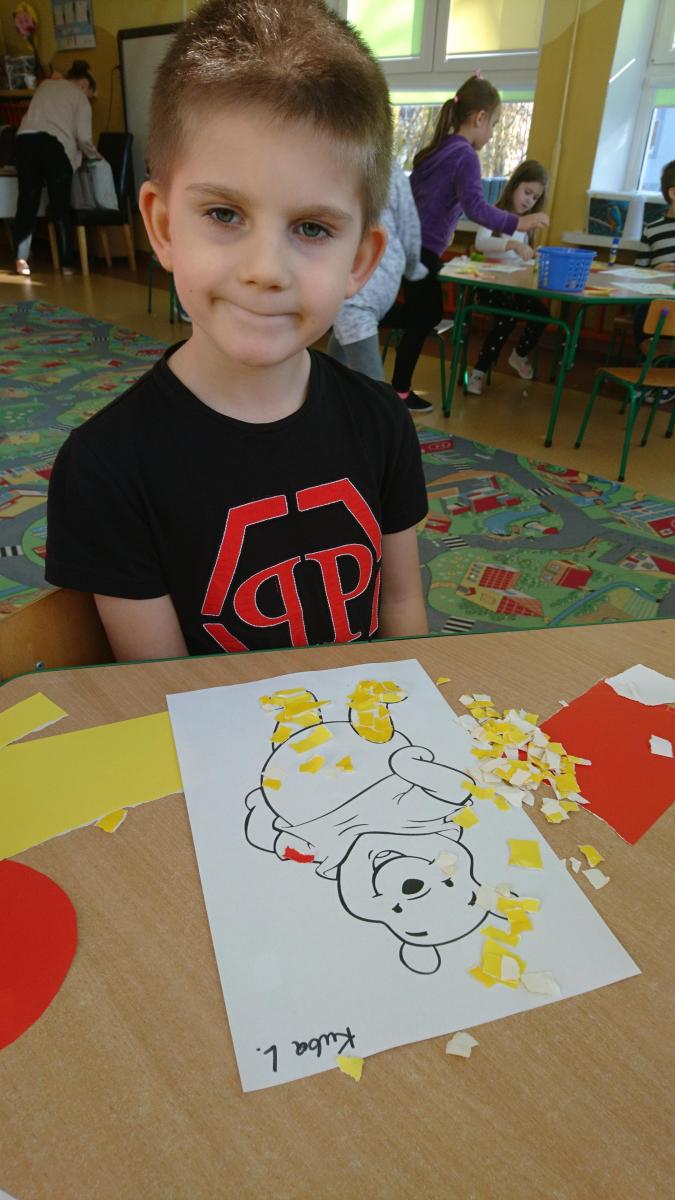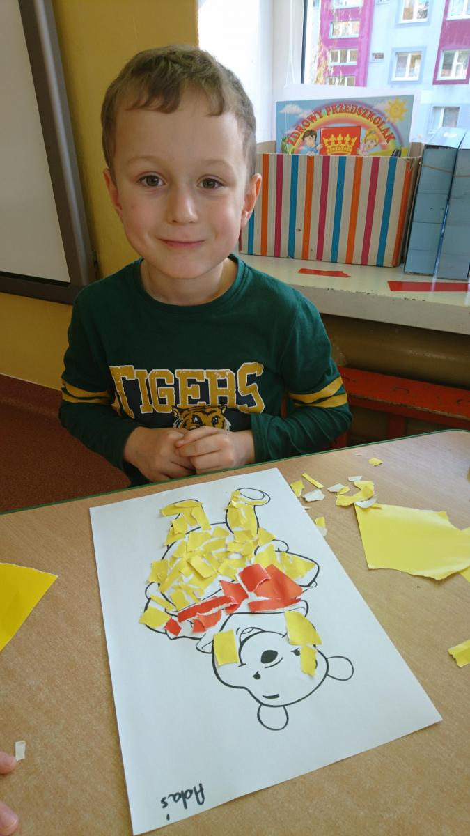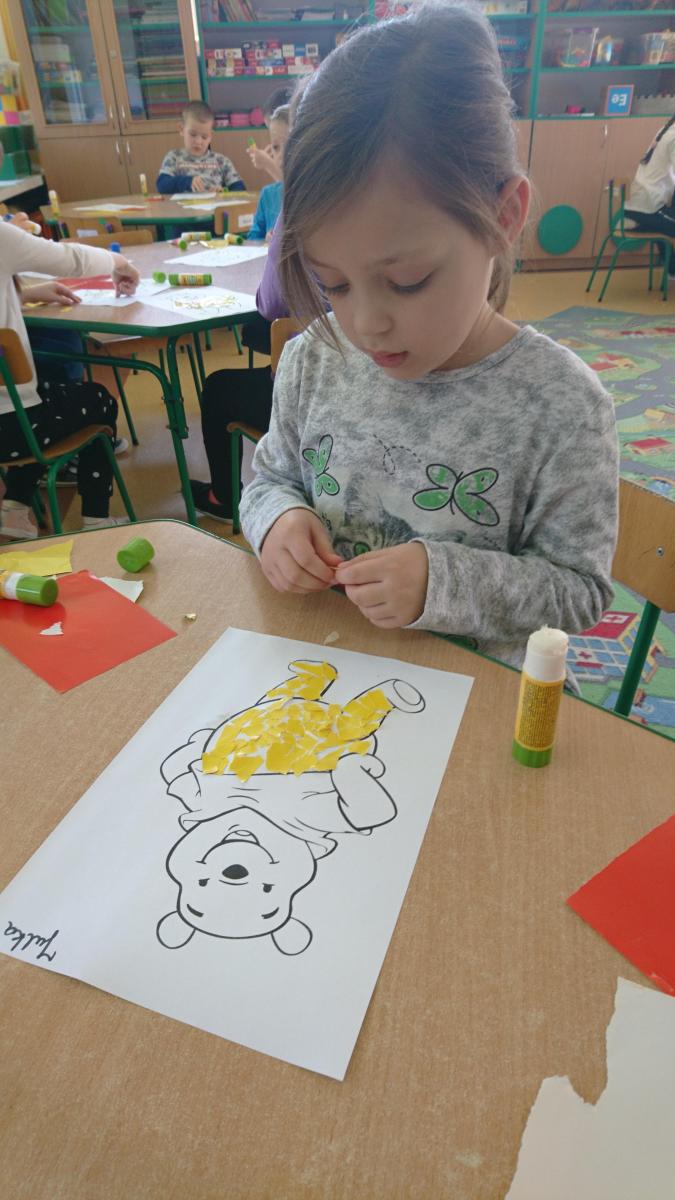 Dzisiaj w przedszkolu swoje święto obchodził Miś. Z tej okazji grupa Pszczółek wysłuchała fragmentu książki "Kubuś Puchatek", wybrała się w podróż do "Stumilowego lasu" oraz dzieci układały puzzle o przygodach misia i jego przyjaciół. Następnie obejrzeliśmy fragment filmu "Kubuś Puchatek" opowiadający o przyjaźni i miłości na podstawie, którego rozmawialiśmy o empatii i wzajemnym szacunku. Dzieci z podziałem na grupy układały "Misiowe sudoku" oraz wykonały pracę plastyczną - Kubuś Puchatek.