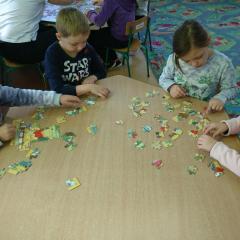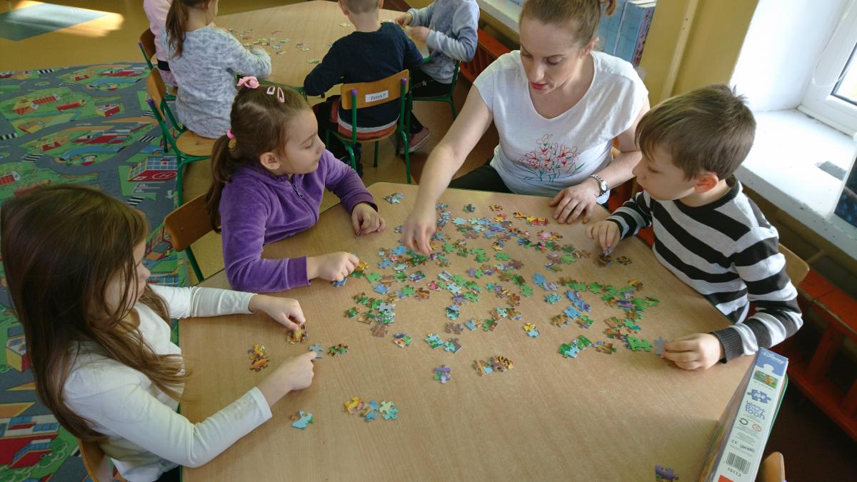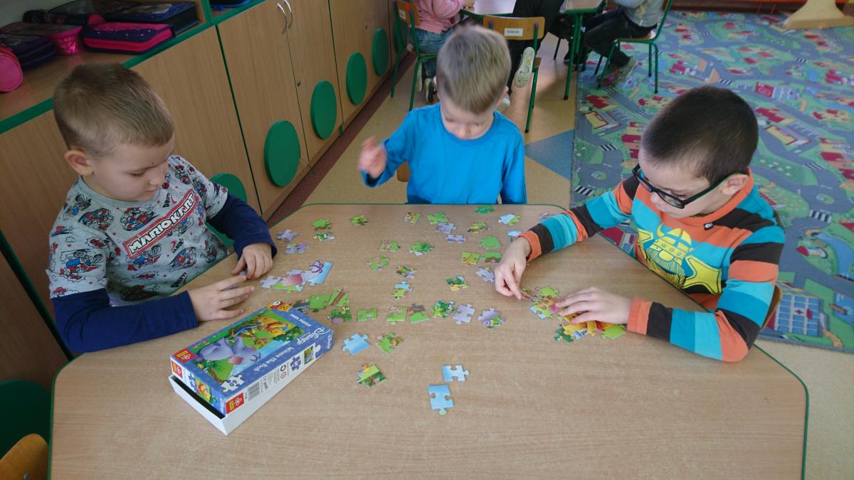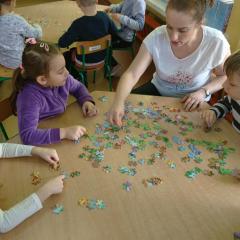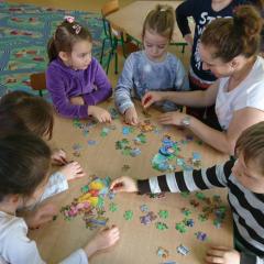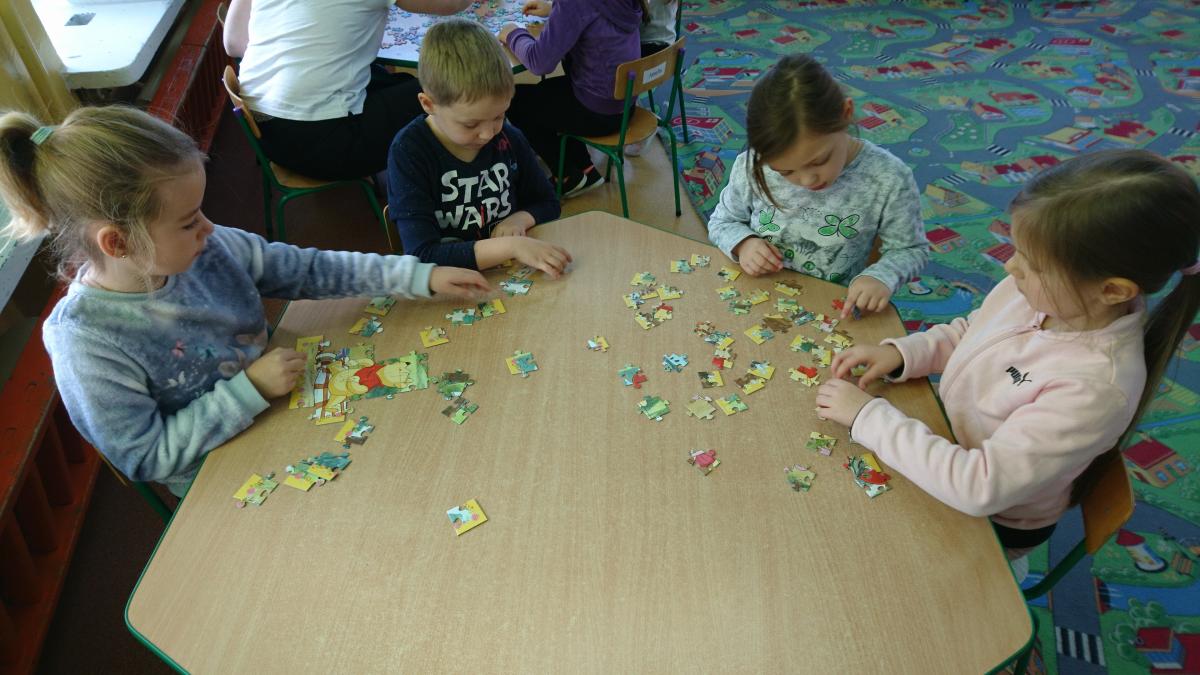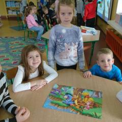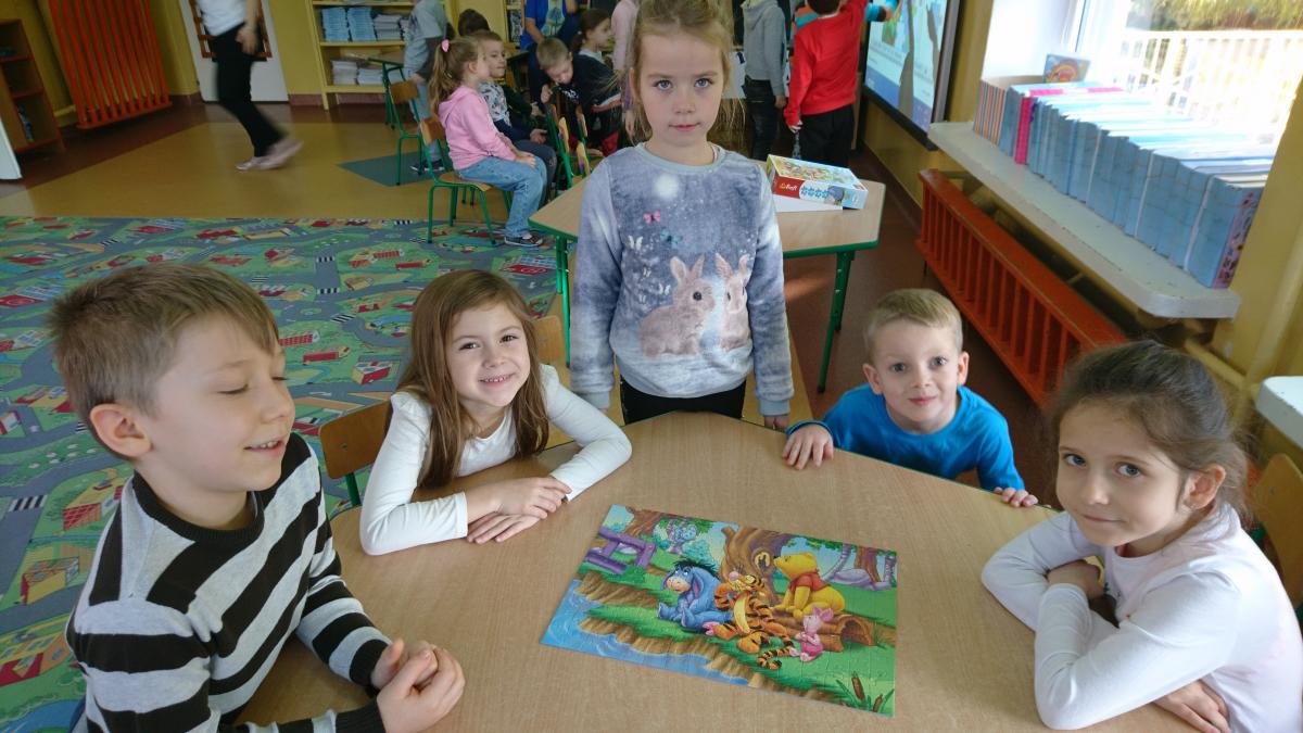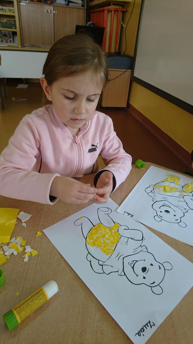 Dzisiaj w przedszkolu swoje święto obchodził Miś. Z tej okazji grupa Pszczółek wysłuchała fragmentu książki "Kubuś Puchatek", wybrała się w podróż do "Stumilowego lasu" oraz dzieci układały puzzle o przygodach misia i jego przyjaciół. Następnie obejrzeliśmy fragment filmu "Kubuś Puchatek" opowiadający o przyjaźni i miłości na podstawie, którego rozmawialiśmy o empatii i wzajemnym szacunku. Dzieci z podziałem na grupy układały "Misiowe sudoku" oraz wykonały pracę plastyczną - Kubuś Puchatek.